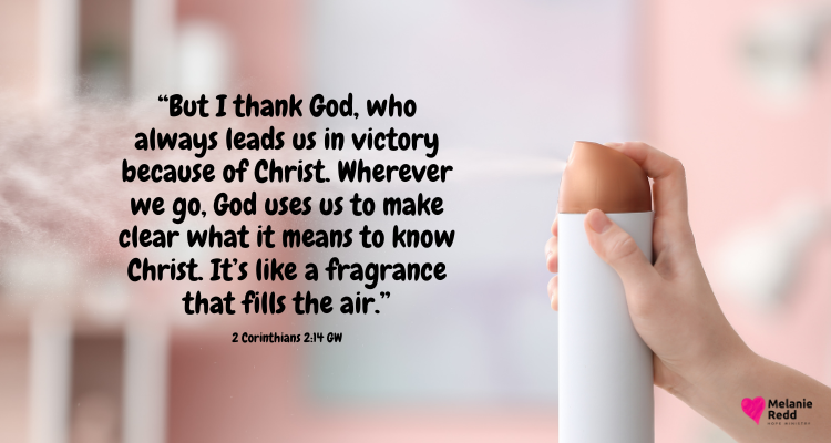“But I thank God, who always leads us in victory because of Christ. Wherever we go, God uses us to make clear what it means to know Christ. It’s like a fragrance that fills the air.”